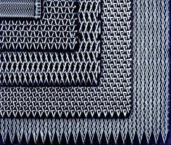 Expanded metal is a farm of metal made by shearing a metal plate in a press, so that the metal stretches, leaving diamond shaped voids surrounded by interlinked bars of the metal.